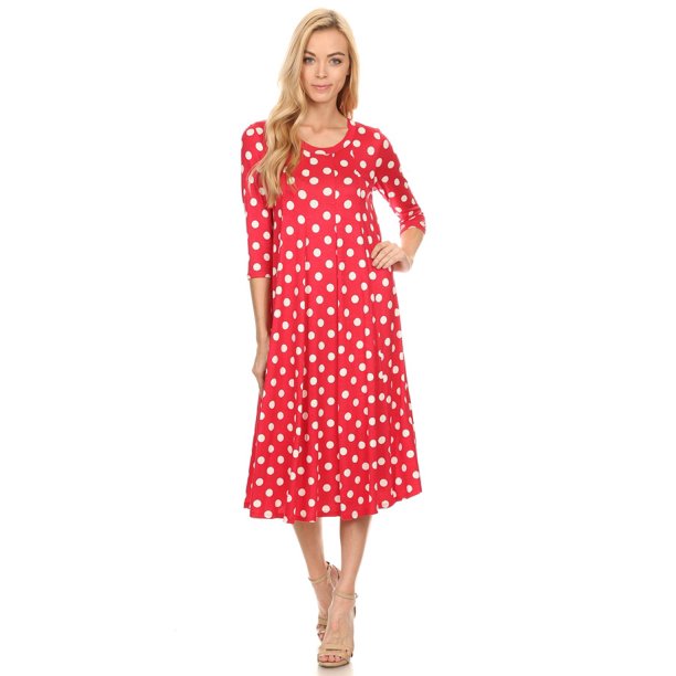 Moa Collection Women S Trendy Style 3 4 Sleeve Polka Dot Print Midi Dress Walmart Com Walmart Com