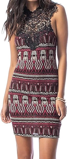Moa Collection Aztec Print Burgundy Lace Collared Dress Large At Amazon Women S Clothing Store